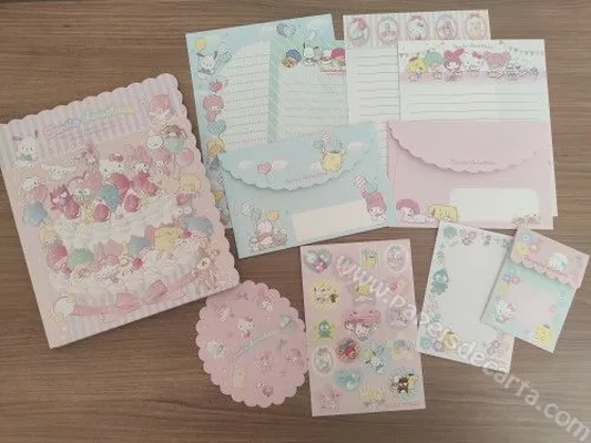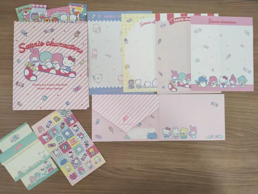 Conjunto com 2 folhas e 1 envelope da Turma da Sanrio Characters
