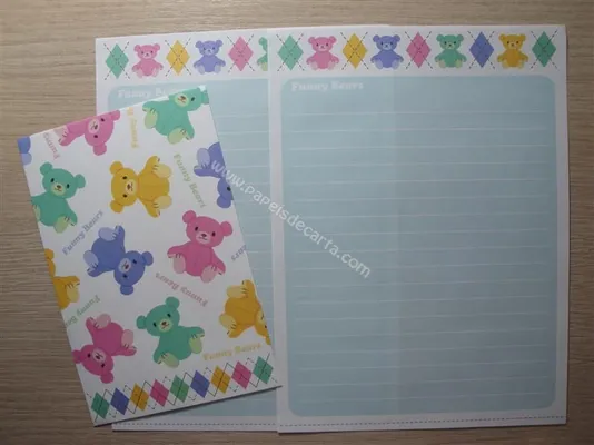 Conjunto com 2 folhas e 1 envelope do Funny Bears 01