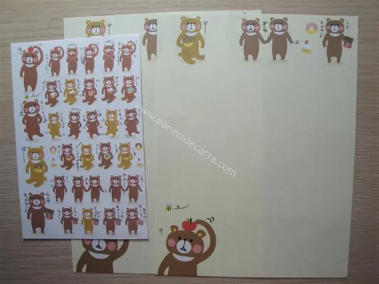 Conjunto com 2 folhas e 1 envelope do Kumakuma Bear