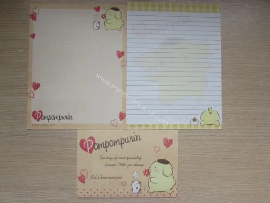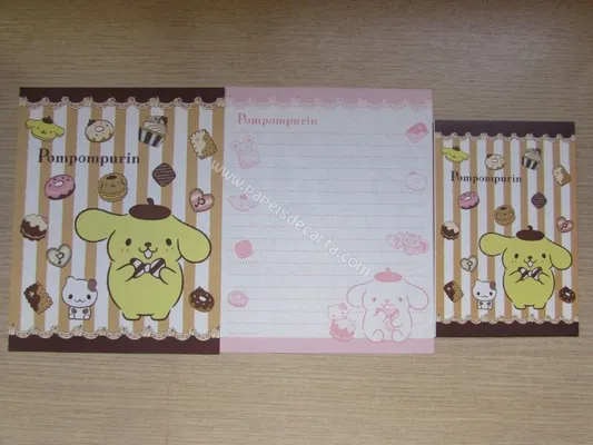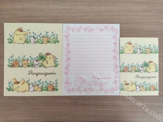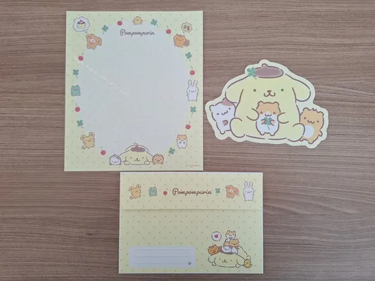 Conjunto com 2 folhas e 1 envelope do Pompompurin 07