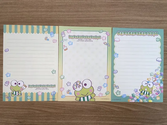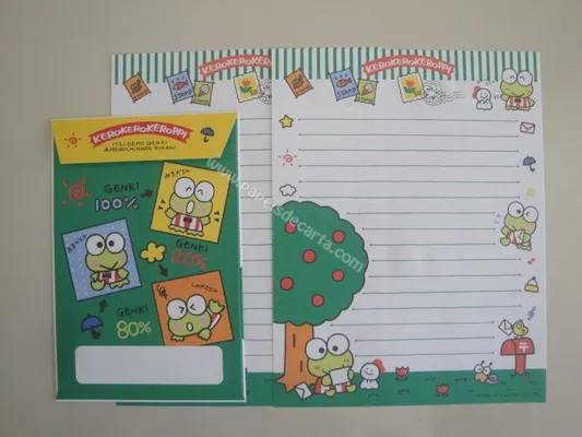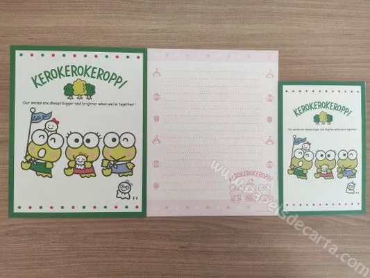 Conjunto com 2 folhas e 1 envelope do Keroppi 01