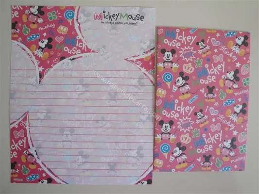 Conjunto com 2 folhas e 1 envelope do Mickey 18