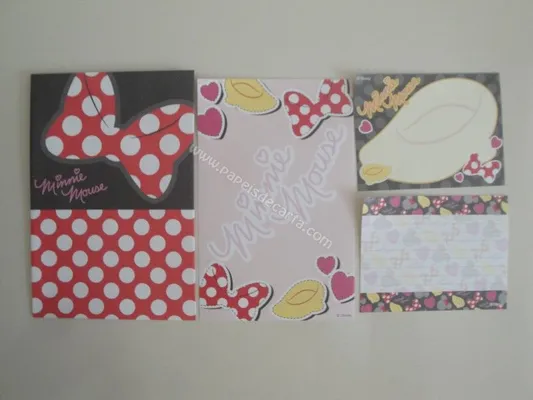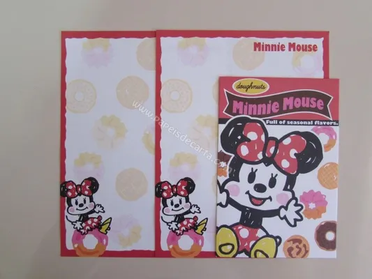 Conjunto com 1 folha, 2 notinhas e 1 envelope da Minnie 01