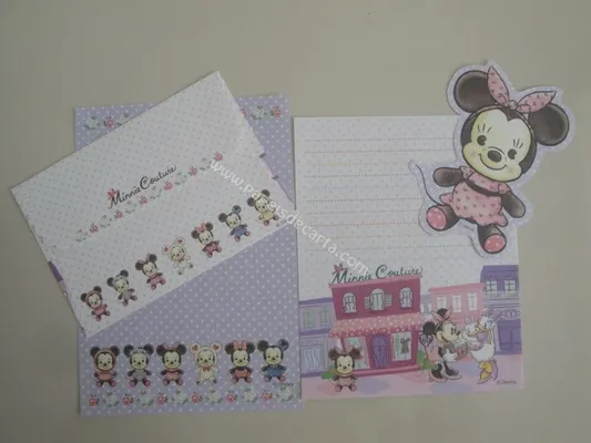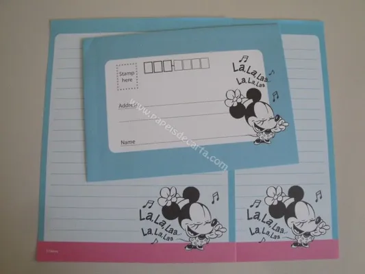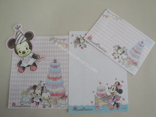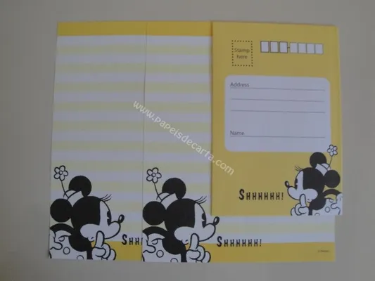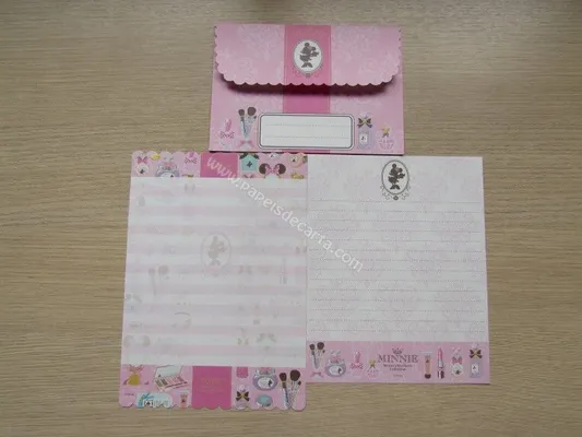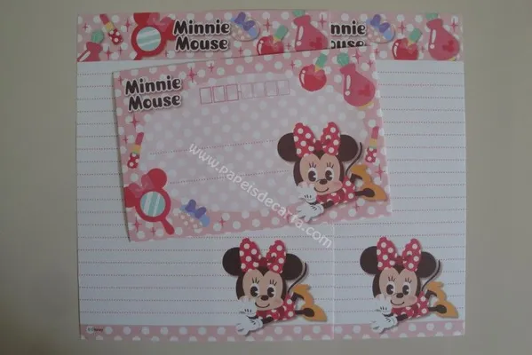 Conjunto com 2 folhas, 1 notinha e 1 envelope da Minnie 01