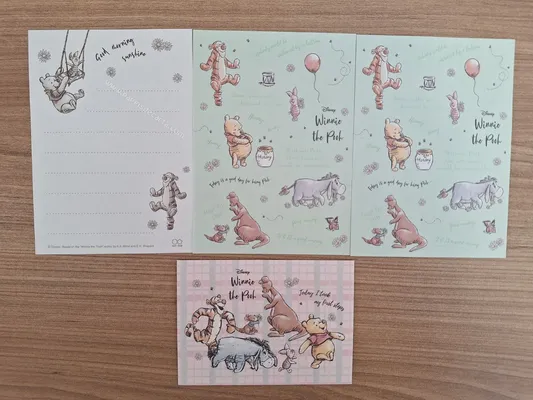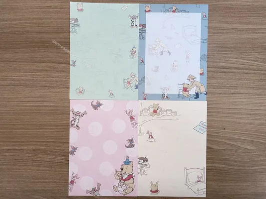Lote com 4 papéis de carta pequenos do Pooh