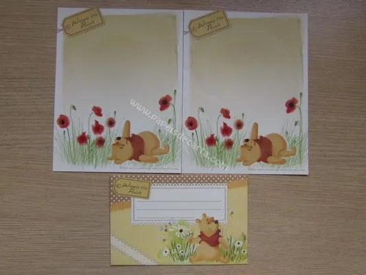Conjunto com 2 folhas e 1 envelope do Pooh 45