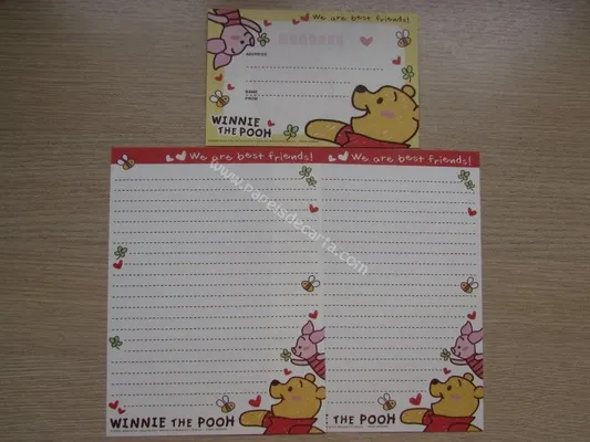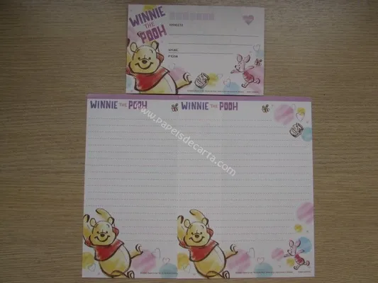 Conjunto com 2 folhas e 1 envelope do Pooh 37