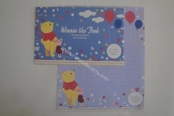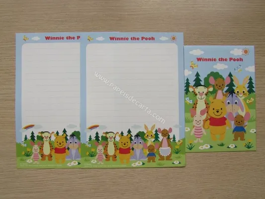 Conjunto com 2 folhas e 1 envelope do Pooh 35