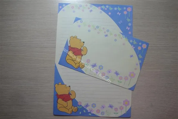 Conjunto com 2 folhas e 1 envelope do Pooh 33