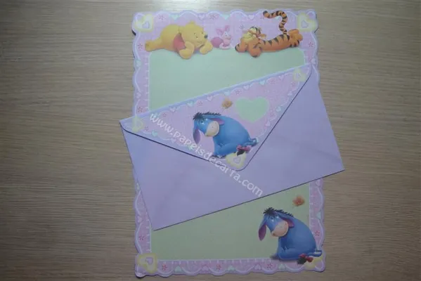 Conjunto com 2 folhas e 1 envelope do Pooh 28