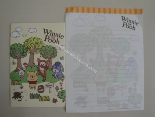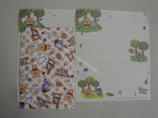 Conjunto com 2 folhas e 1 envelope do Pooh 27