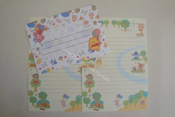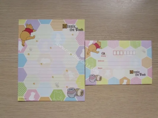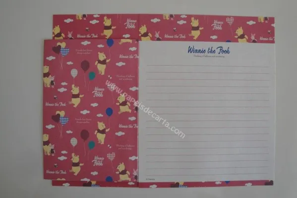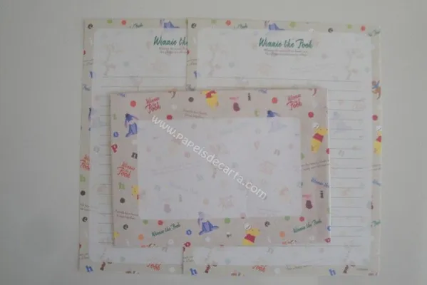 Conjunto com 2 folhas e 1 envelope do Pooh 26
