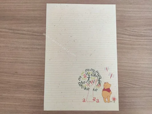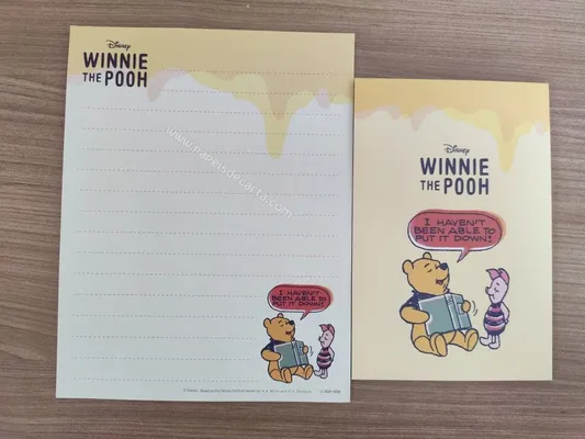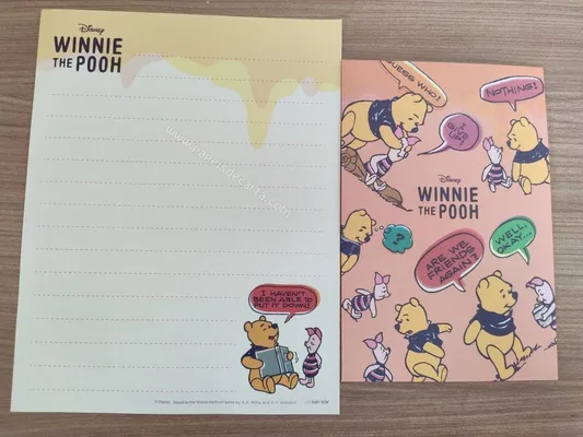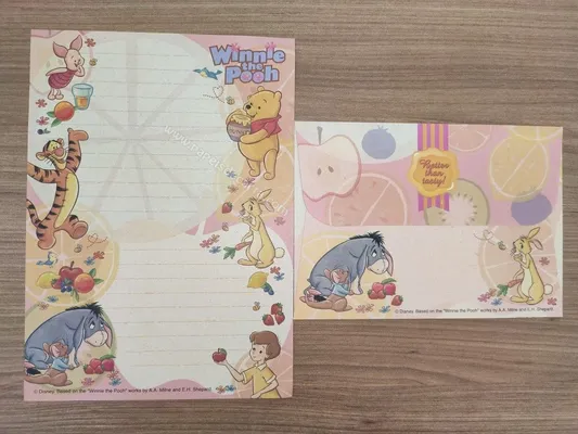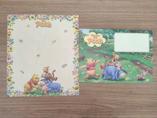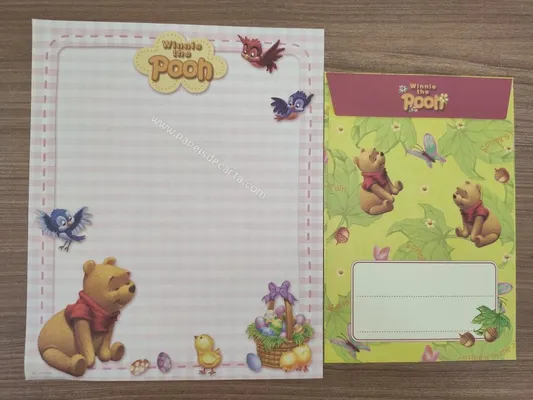 Conjunto com 2 folhas e 1 envelope do Pooh 75