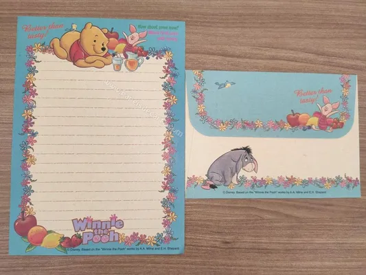 Conjunto com 2 folhas e 1 envelope do Pooh 77