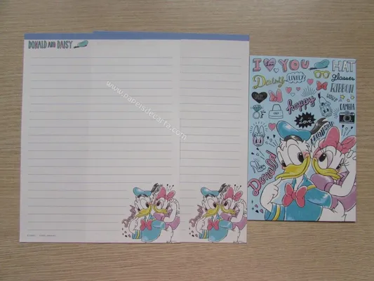 Conjunto com 2 folhas e 1 envelope do Donald Duck e Miss Daisy 09