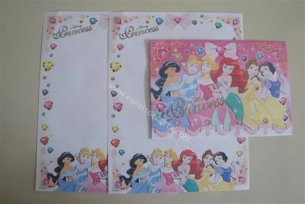 Conjunto com 2 folhas e 1 envelope da Disney Princess 12