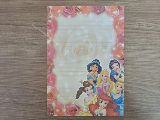 Conjunto com 2 folhas e 1 envelope da Disney Princess 76