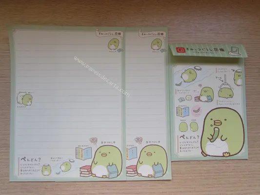Conjunto com 2 folhas e 1 envelope do Sumikko Gurashi 17