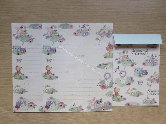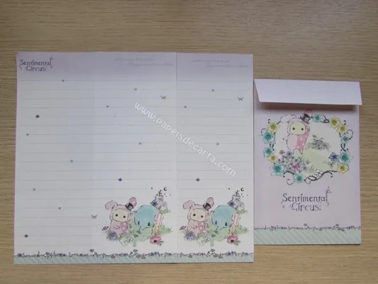 Conjunto com 2 folhas e 1 envelope do Sentimental Circus 52