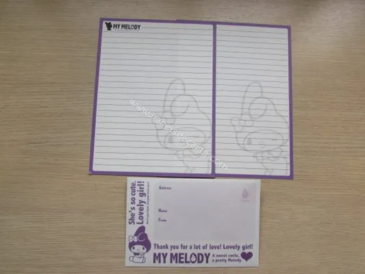 Conjunto com 1 folha, 1 notinha e 1 envelope da My Melody 01