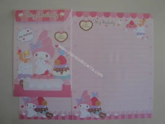 Conjunto com 2 folhas e 1 envelope da My Melody 76