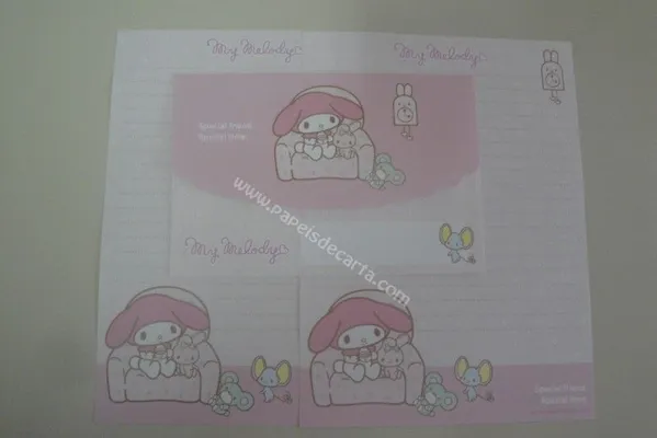 Conjunto com 2 folhas e 1 envelope da My Melody 74
