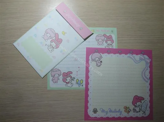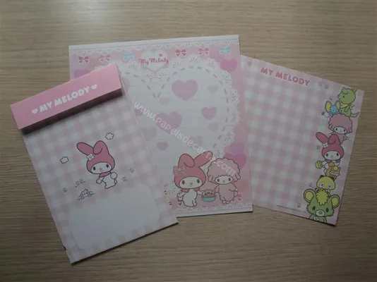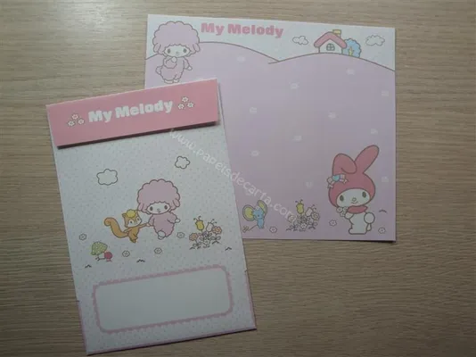 Conjunto com 2 folhas pequenas, 1 notinha e 1 envelope da My Melody 01