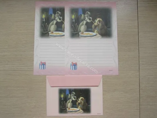 Conjunto com 2 folhas e 1 envelope da Dama e o Vagabundo