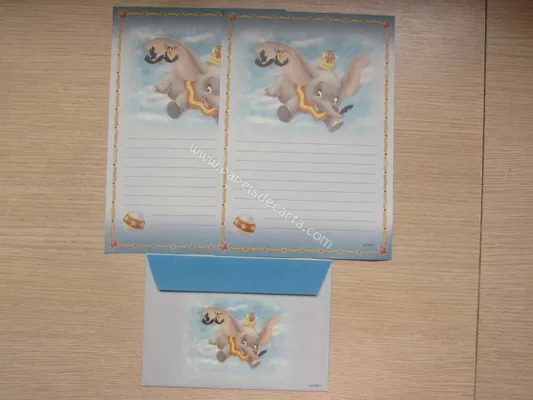 Conjunto com 2 folhas e 1 envelope do Dumbo
