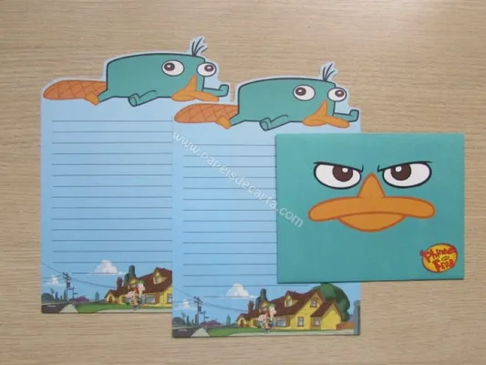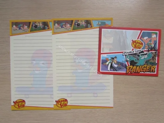 Conjunto com 2 folhas e 1 envelope do Phineas and Ferb 01
