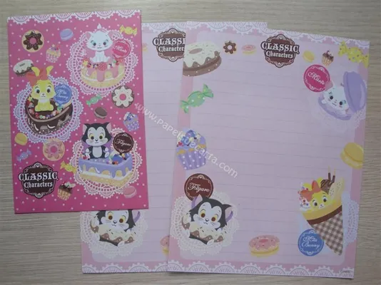 Conjunto Figaro and Cleo com 2 folhas e 1 envelope