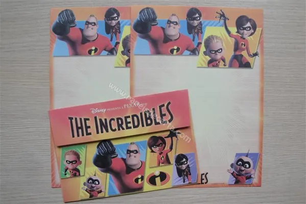 Conjunto com 2 folhas e 1 envelope do The Incredibles 01