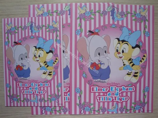 Conjunto Elmer Elephant e Tillie Tiger com 2 folhas e 1 envelope