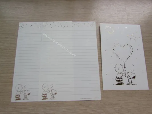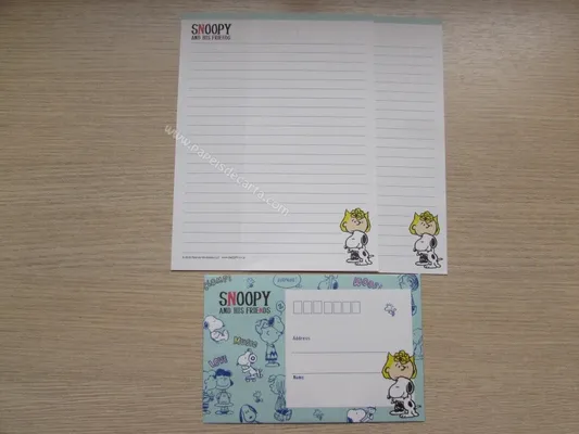Conjunto com 2 folhas e 1 envelope do Snoopy 180