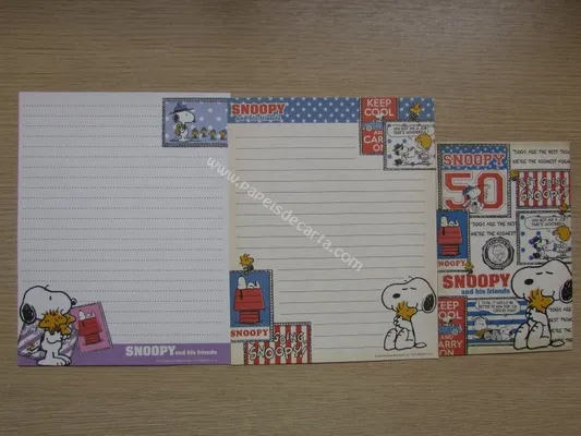 Conjunto com 2 folhas e 1 envelope do Snoopy 140