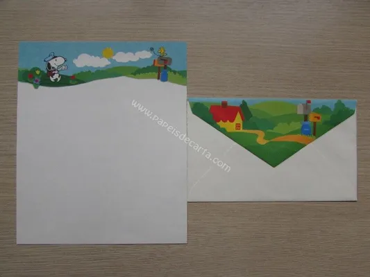 Conjunto com 2 folhas e 1 envelope do Snoopy 126
