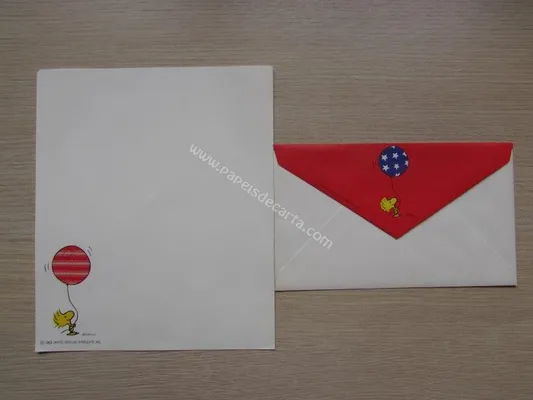 Conjunto com 2 folhas e 1 envelope do Snoopy 121