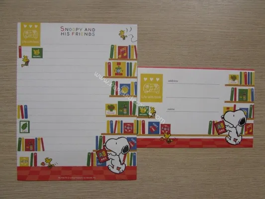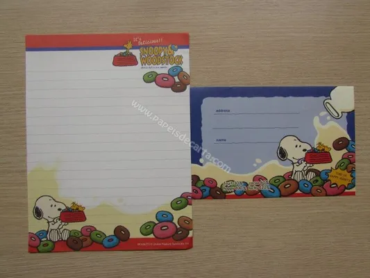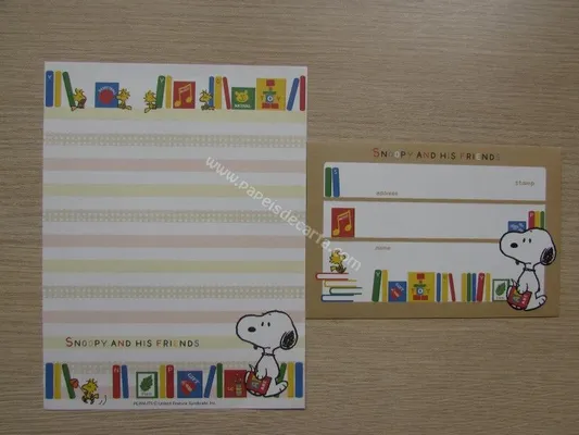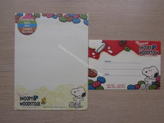 Conjunto com 2 folhas e 1 envelope do Snoopy 120