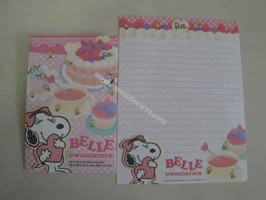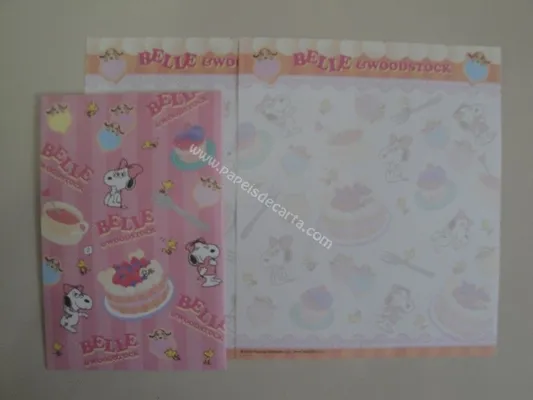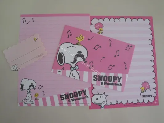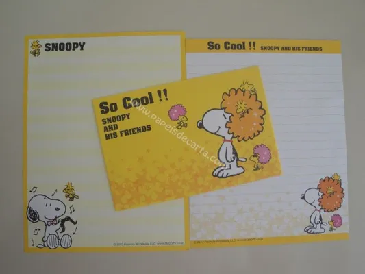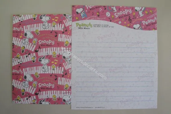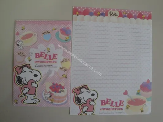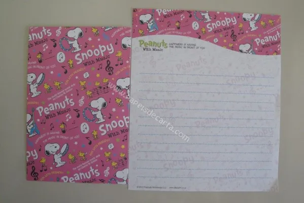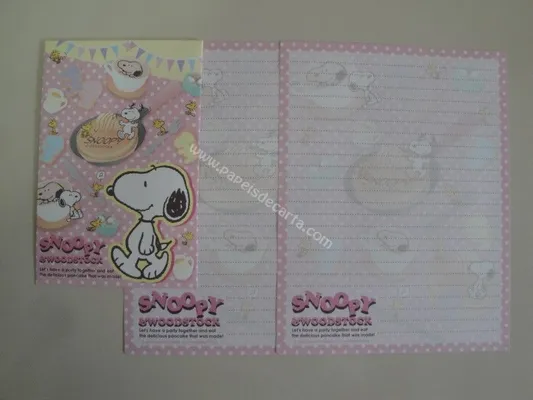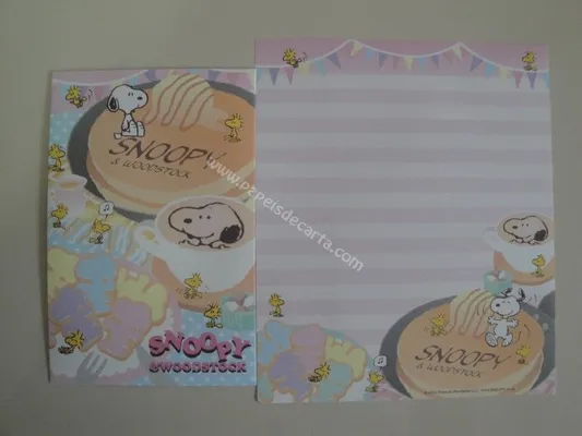 Conjunto com 2 folhas, 1 notinha e 1 envelope do Snoopy 01