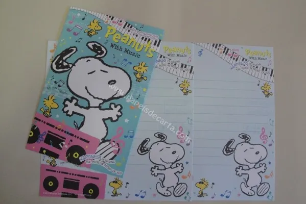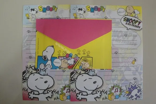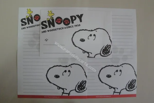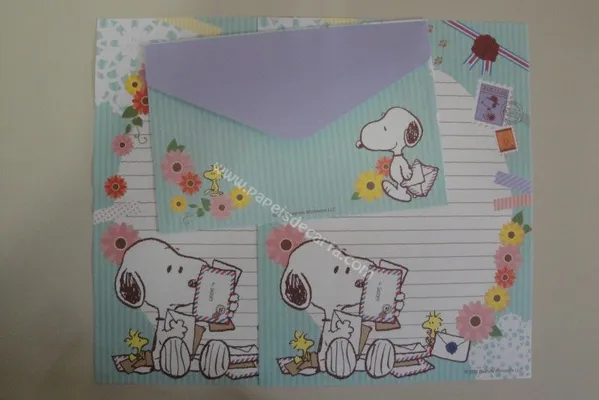 Conjunto com 2 folhas e 1 envelope do Snoopy 76
