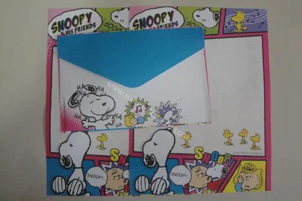 Conjunto com 2 folhas e 1 envelope do Snoopy 73