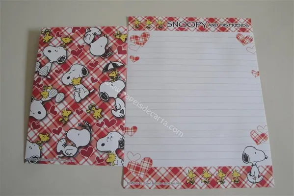 Conjunto com 2 folhas e 1 envelope do Snoopy 33