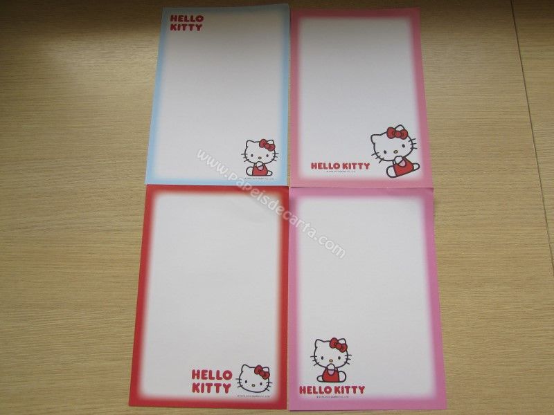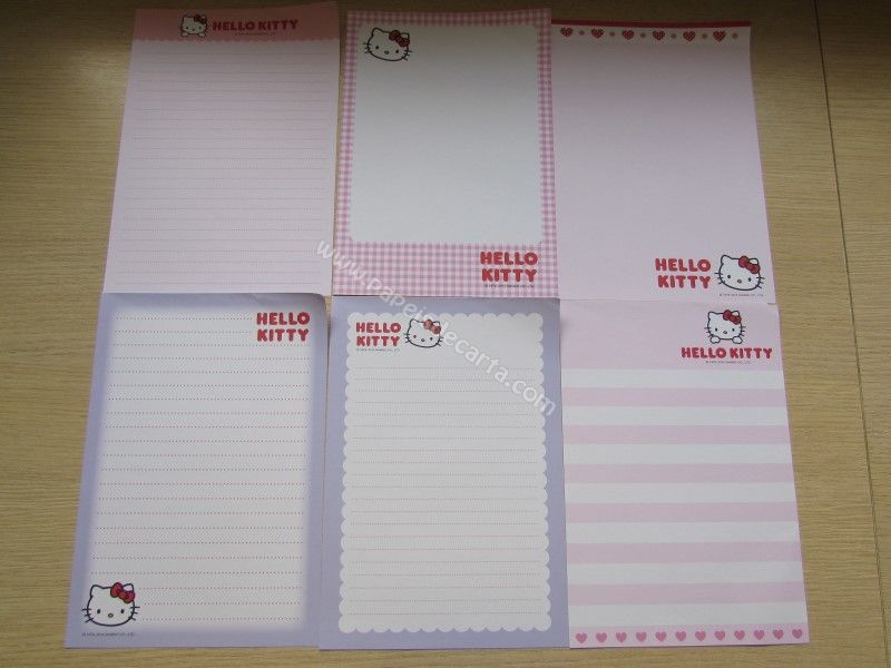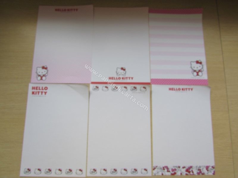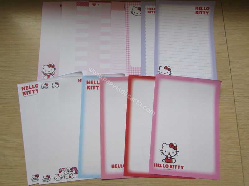 Conjunto importado, de papel de carta com 16 folhas diferentes da Hello Kitty. Tamanho médio.