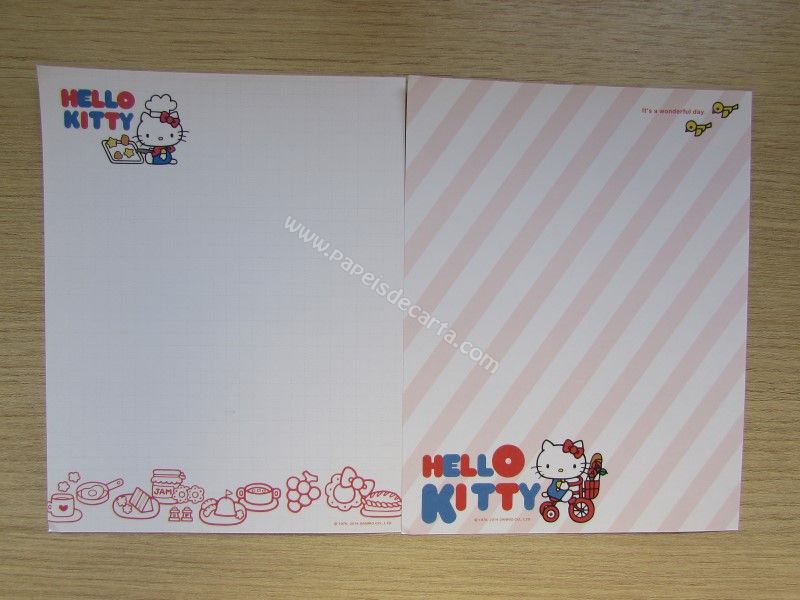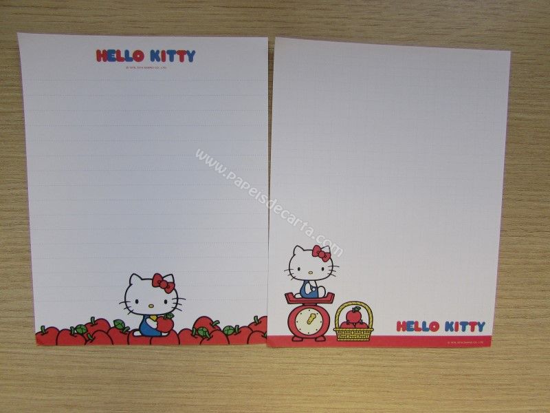 Conjunto importado, de papel de carta com 6 folhas diferentes da Hello Kitty. Tamanho um pouco menor que o médio.
