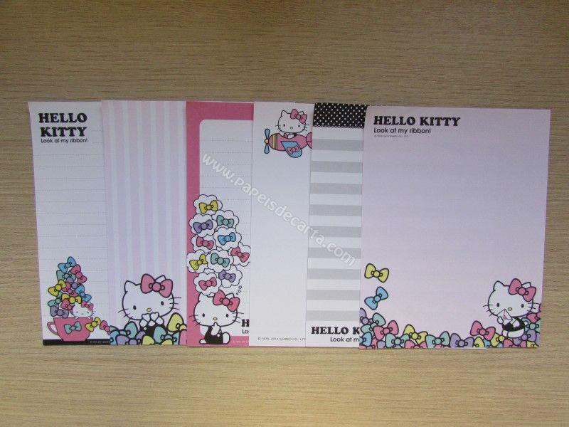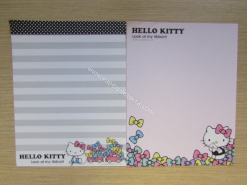 Conjunto importado, de papel de carta com 6 folhas diferentes da Hello Kitty. Tamanho um pouco menor que o médio.