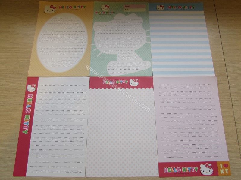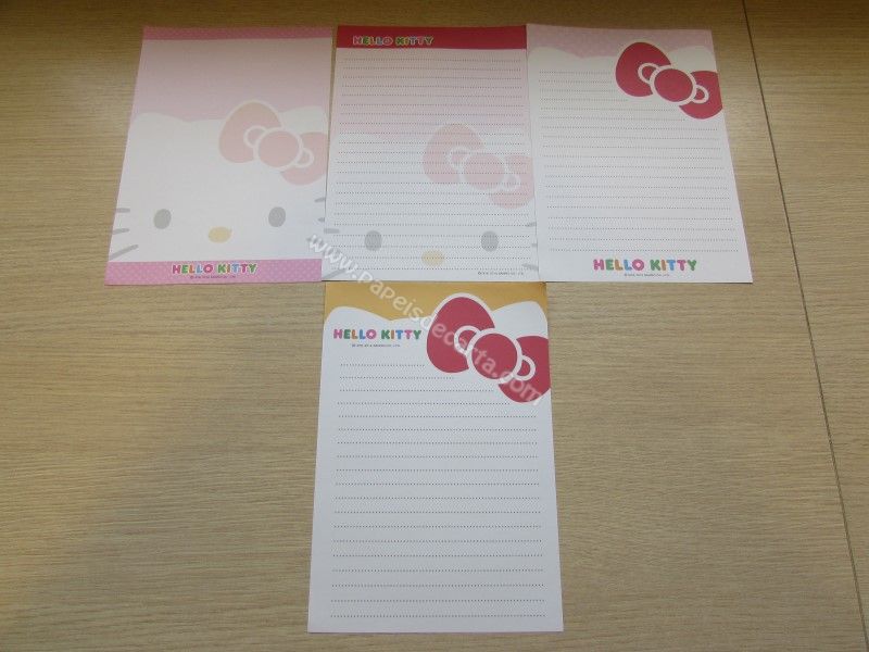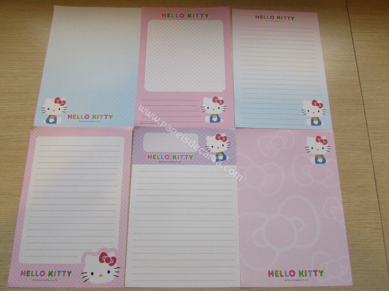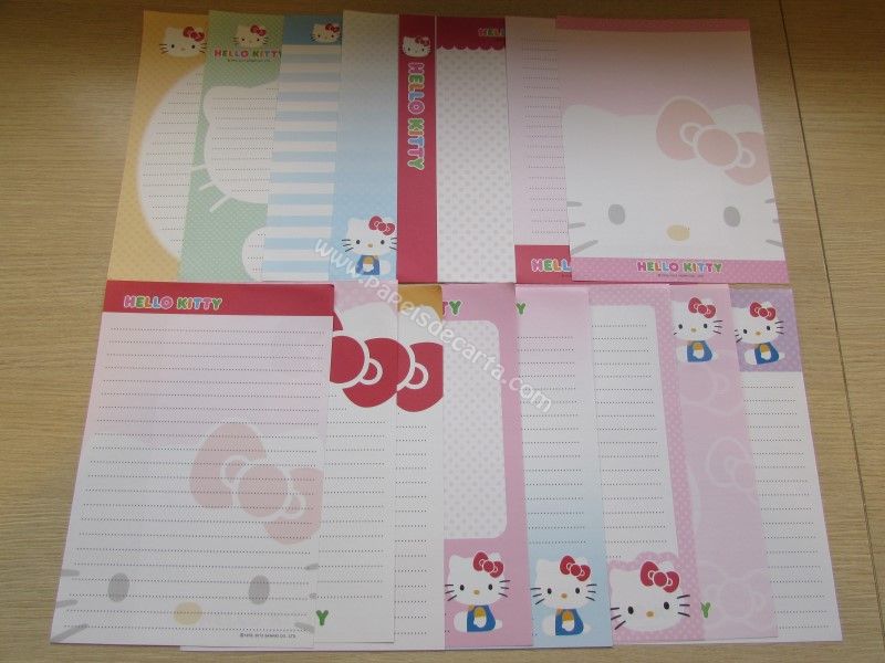 Conjunto importado, de papel de carta com 16 folhas diferentes da Hello Kitty. Tamanho médio.