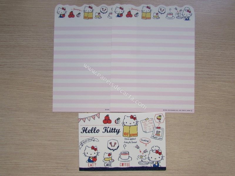 Conjunto importado, de papel de carta da Hello Kitty, com 2 folhas iguais e 1 envelope, da Sanrio.