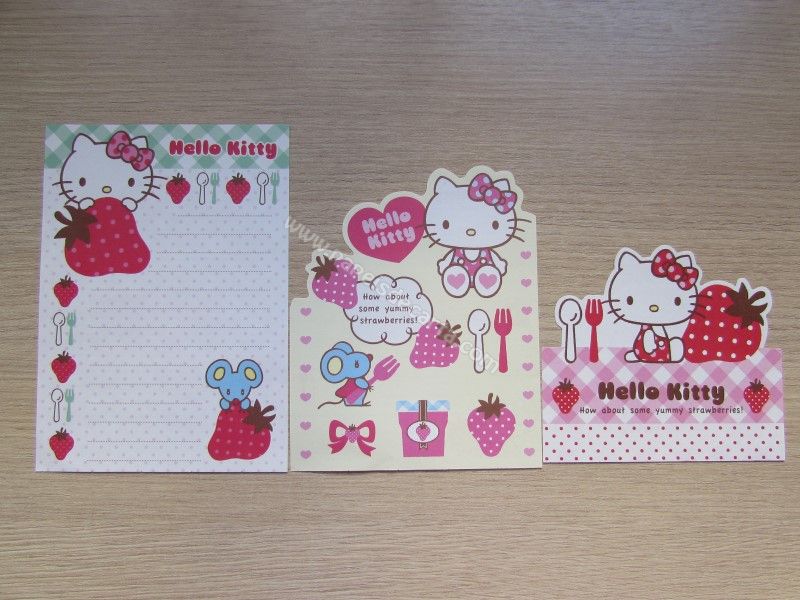 Lote de papel de carta importado, com 3 papéis pequenos, diferentes da Hello Kitty.