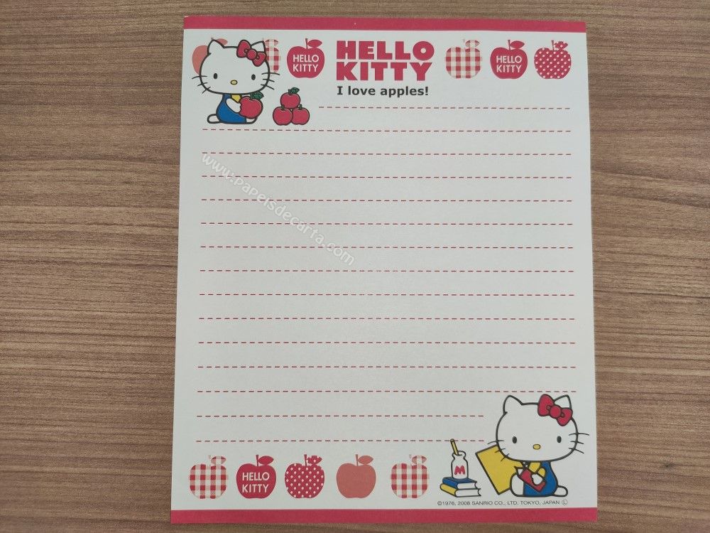 Conjunto importado, de papel de carta da Hello Kitty, tamanho médio, com 1 folha e 1 envelope, da Sanrio.