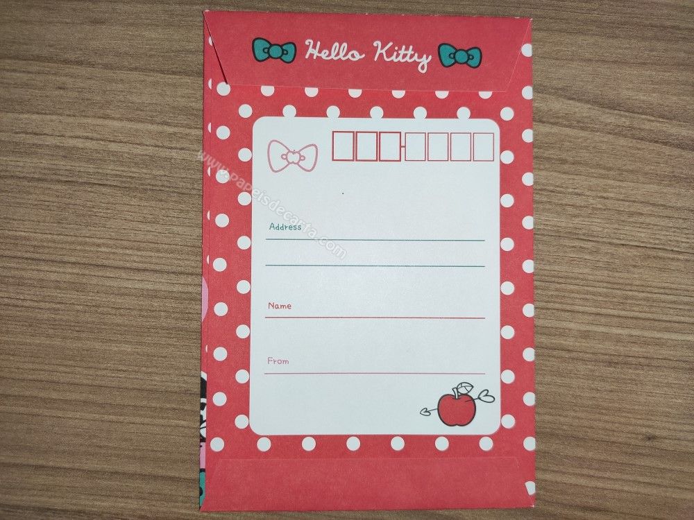 Conjunto importado, de papel de carta da Hello Kitty, com 2 folhas e 1 envelope, da Sanrio.